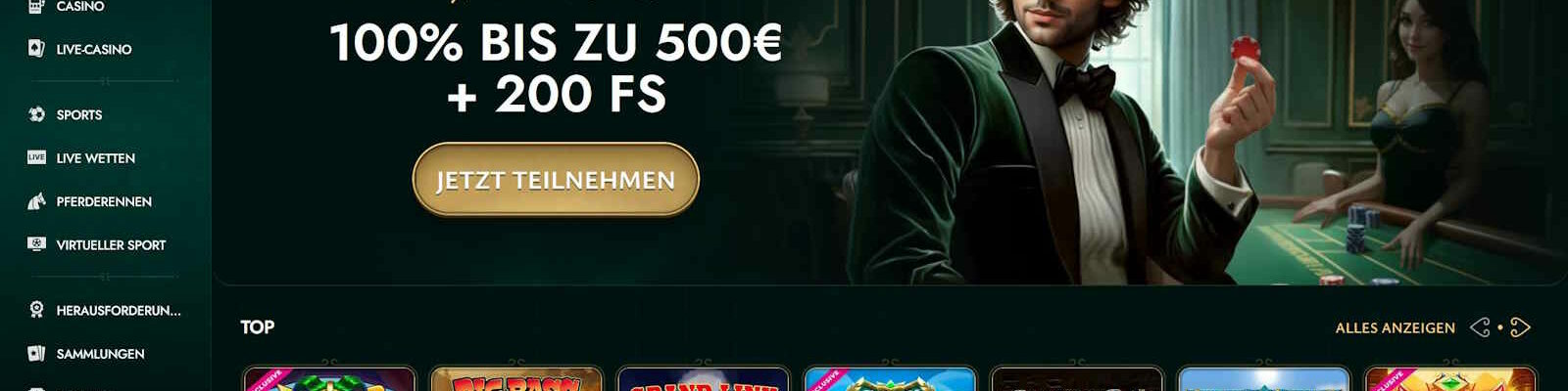 ➥ 100% bis 500 € + 200 Freispiele