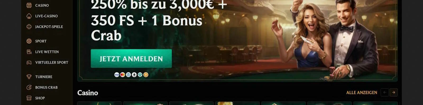 ➥ 250% bis 3000 € + 350 FS + Bonus Crab