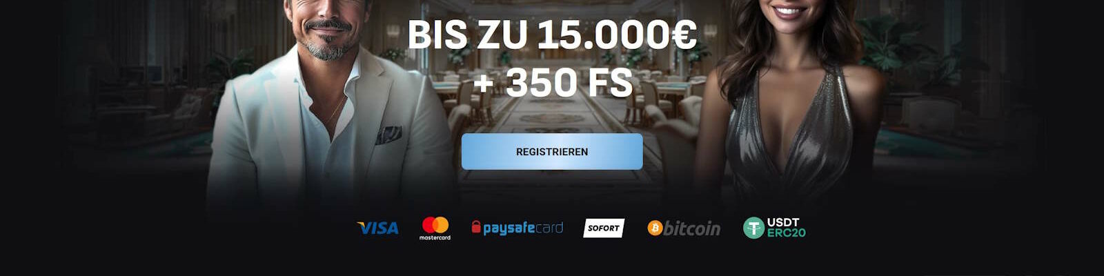➥ 4-fach Bonus bis 15.000 € + 350 FS
