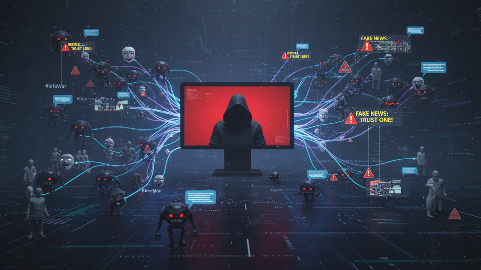 Durch die schnelle und massenhafte Verbreitung von Falschinformationen oder Gerüchten, befeuert durch Bots und Trolle, kann es zu Panik, Verunsicherung oder Massenhysterie kommen. Darüber hinaus können koordinierte Kampagnen gezielt eingesetzt werden, um Individuen oder Gruppen zu schaden, gesellschaftliche Spaltung zu fördern oder politische Prozesse zu beeinflussen.
